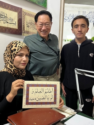 Pak Anthony Tjio memesan tulisan ” Uslub al ilma walau fis Sin ” yang berarti : Carilah ilmu walau jauh sampai ke China “