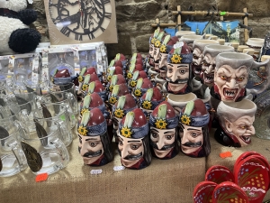 Satu persatu kita berfoto di pinggir peti, ternyata si dracula adalah orang hidup. Setiap yang berfoto , dia pun ikut bergaya. Waktu  dia melihat Pak Norman berpose, si dracula tidak berani membuat pose yang mengejutkan.   Takut Pak Norman kaget.   Setelah selesai kita turun . Dibawah terdapat souvenir shop yang menjual segala macam dengan gambar dracula.